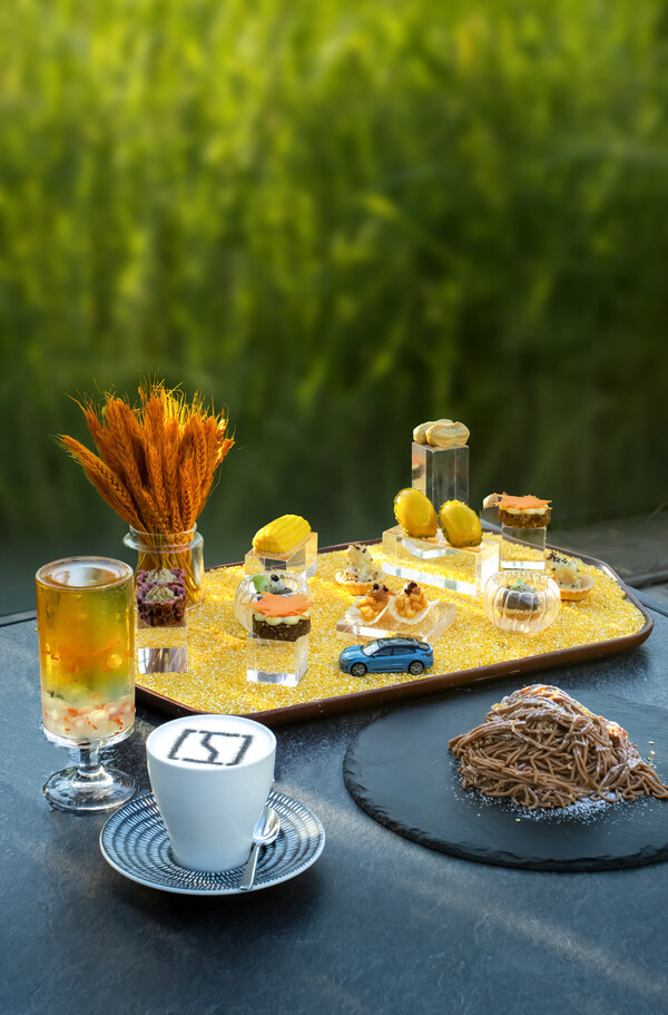 此外,安岚与极氪联合推出"向野而行"主题下午茶,将秋天的山野风味浓缩于一方餐桌之上。精选当季新鲜食材为灵感,打造出造型精致、口感丰富的餐点小食,再搭配印有极氪logo的拉花咖啡,以小巧的极氪猎装车模作为点缀,每一口都是自然的馈赠。时光仿佛在此时都慢了下来,让人全然沉浸在"停留即享松弛"的惬意氛围里。