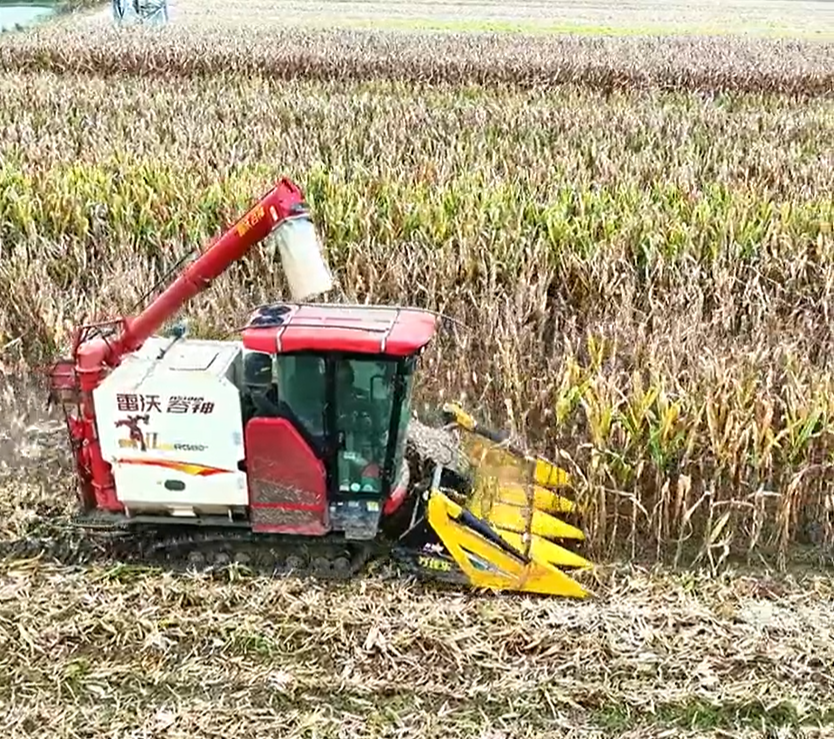 在安徽灵璧的田间地头,雷沃谷神轮式玉米机和履带机正利用降雨间隙,紧张有序地抢收夏玉米。