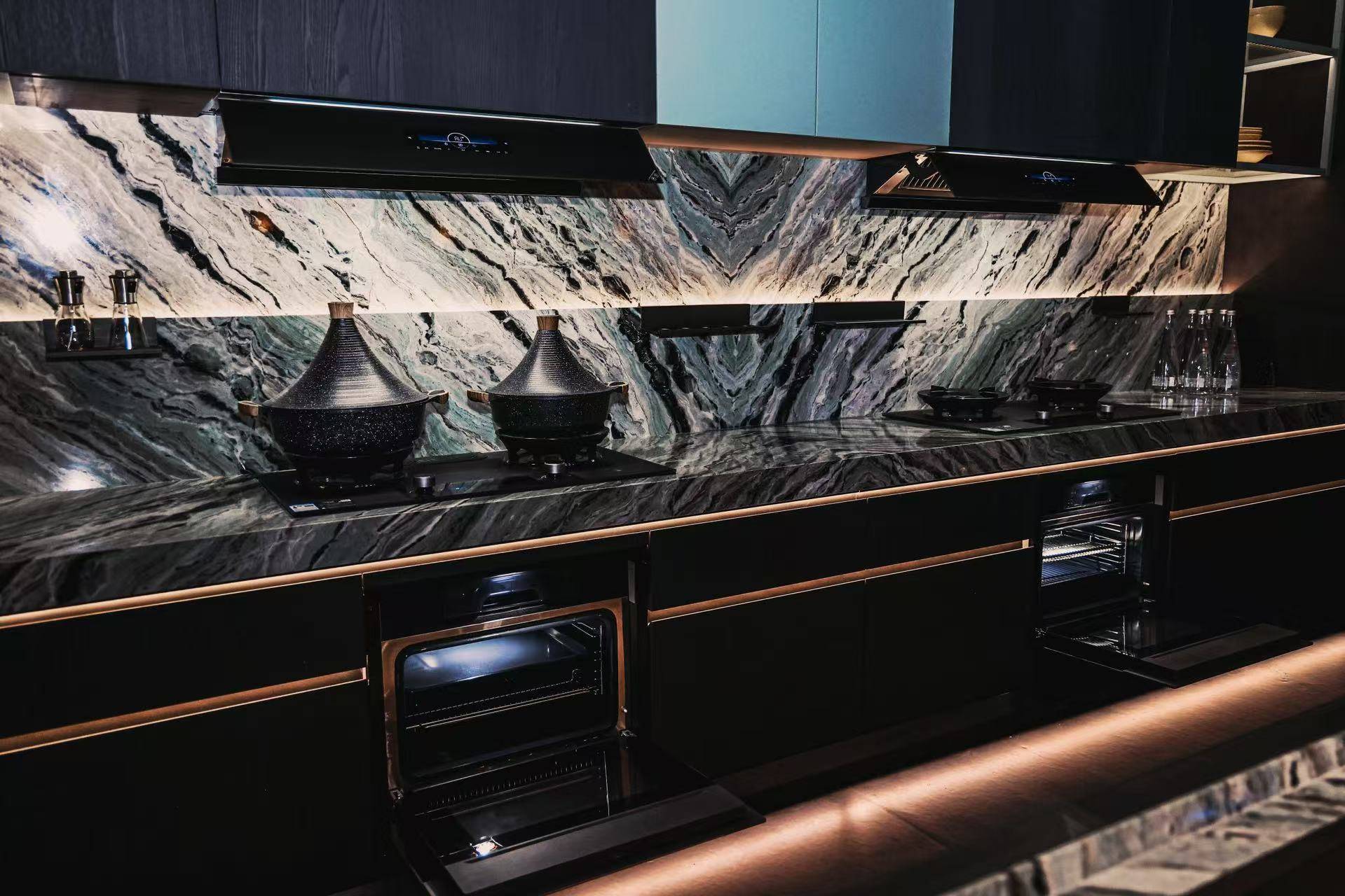 在勾勒出智慧全屋的整体蓝图后,FotileStyle进一步将目光投向家的核心场域,携洞庭系列载誉返场,以智慧重塑厨房的社交仪式。其“炊宴模式”启动时,烹饪区灯光聚焦暖意,烟机与电动抽屉同步开启,“寻物模式”一键定位食材,让下厨从劳作变为家的仪式。“观览模式”则完美适配开放式社交厨房场景,在烹饪与待客之间自如切换。