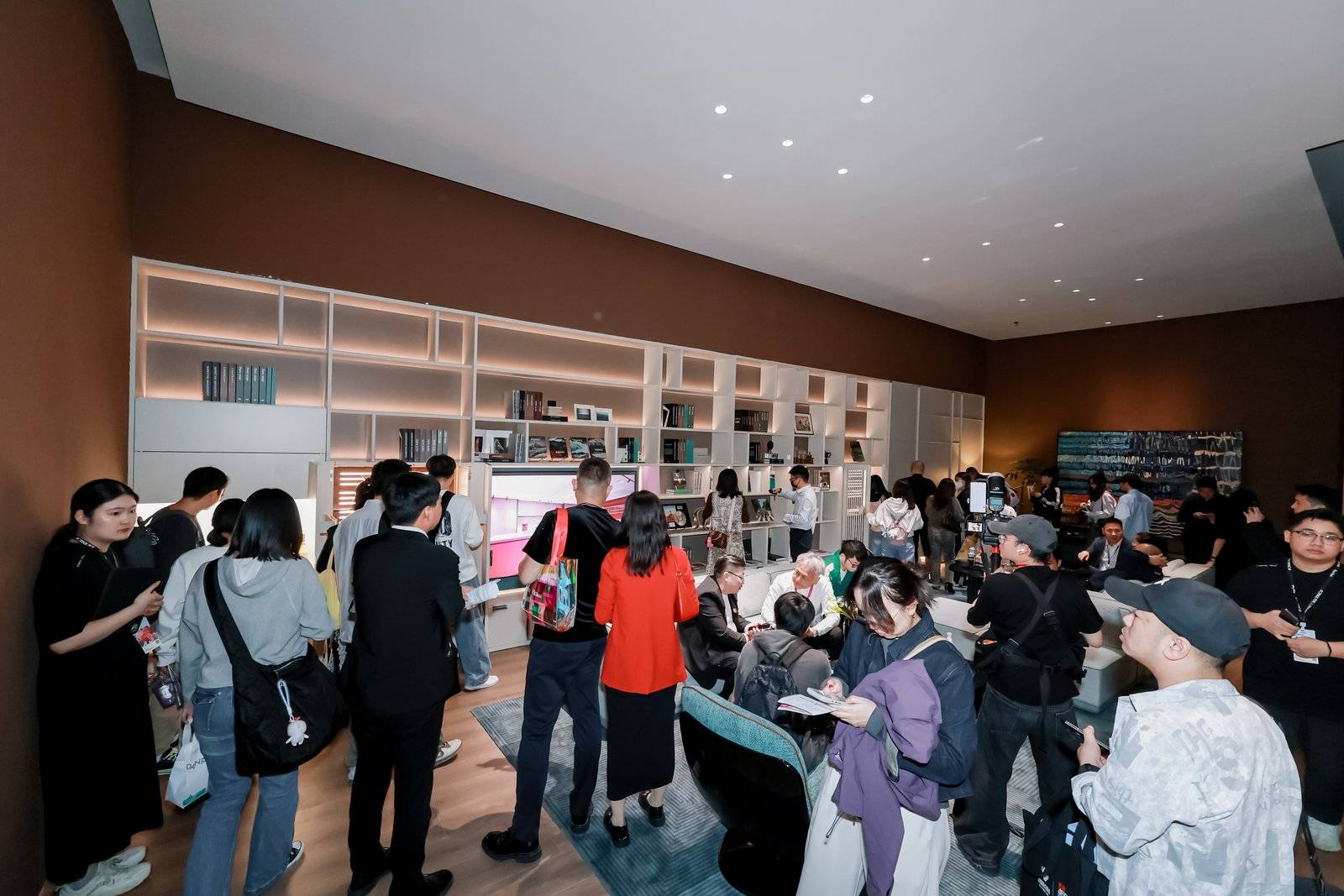 展厅内人流如织,参观者纷纷驻足于各智慧生活场景之中,沉浸式体验未来家的模样。展厅设计特邀中国著名建筑师及室内设计师戴昆操刀,以“严谨科技美学”融合“高端生活体验”,搭建起“科技与生活的桥梁”,实现“技术理性”到“生活感性”的自然过渡,打造了“科技与自然共生”的高端家居体验场域,让参观者在行走间便能感受智能科技与人文关怀的智慧交融。