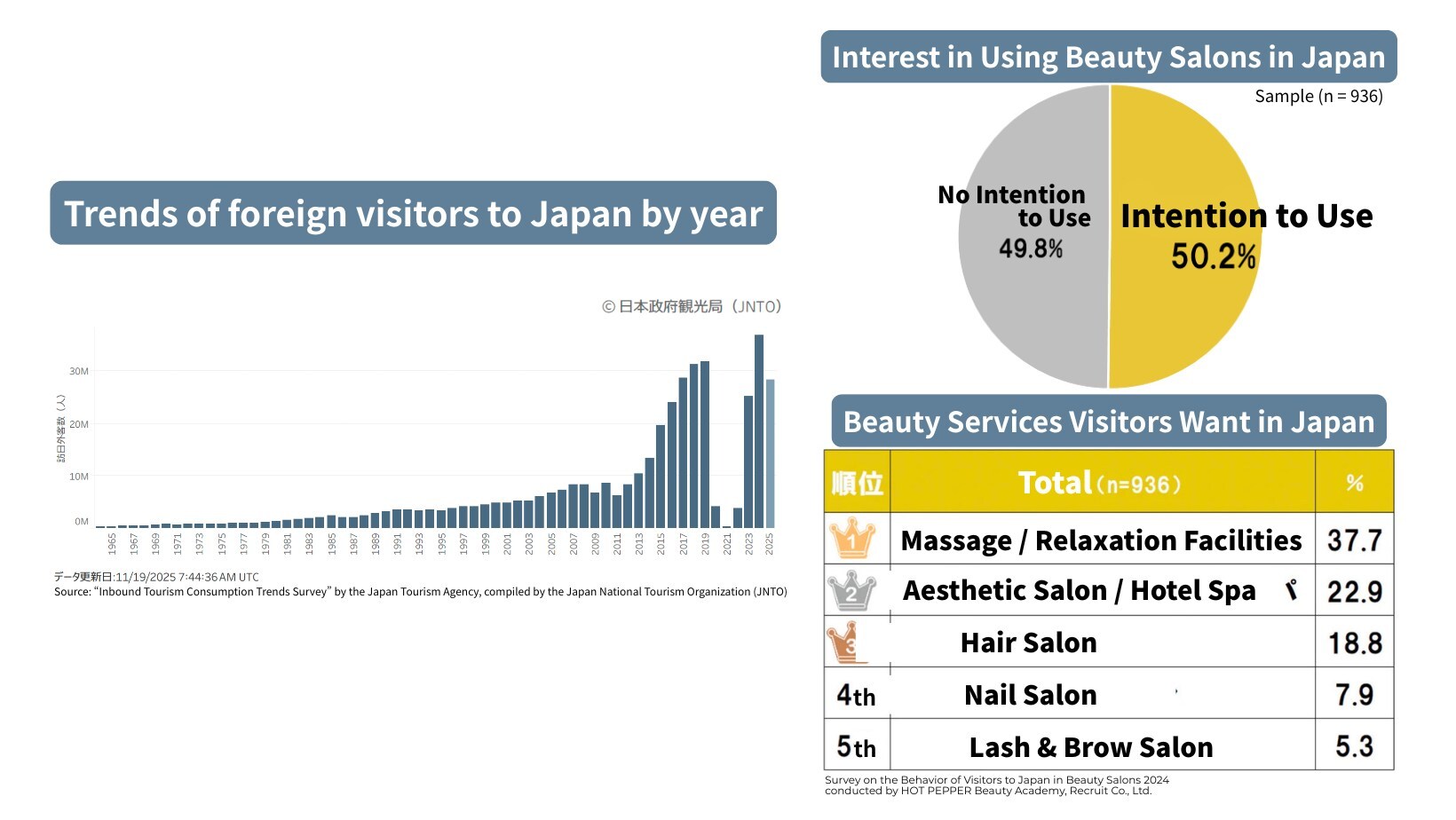 近年来,日本入境游市场快速复苏,国际游客数量已恢复至疫情前水平。行业调查显示,约37.7%的访客希望在日本停留期间能体验放松理疗服务,可见该领域需求增长显著。