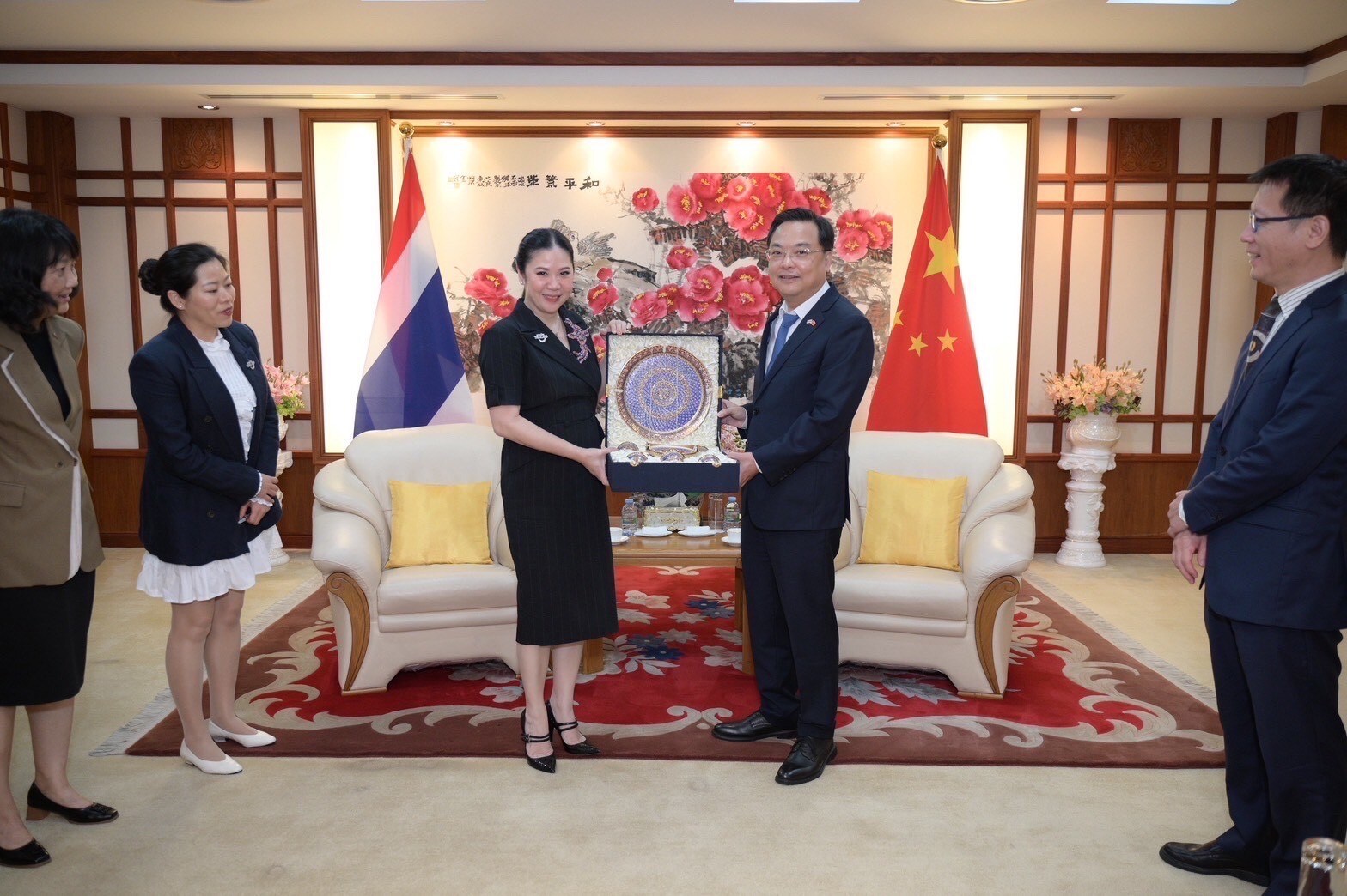 2025年10月24日,泰国国家旅游局(TAT)局长塔帕妮•吉娅蒂沛汶女士率领包括副局长帕塔拉阿侬•纳•清迈女士、东亚司司长诗莉吉阿侬•黛拉达纳松颇女士在内的代表团,拜会了中华人民共和国驻泰王国特命全权大使张建卫阁下。此次会晤于中国驻泰国大使馆举行,旨在进一步加强泰中政府间(G2G)旅游合作,并深化两国的战略伙伴关系。
