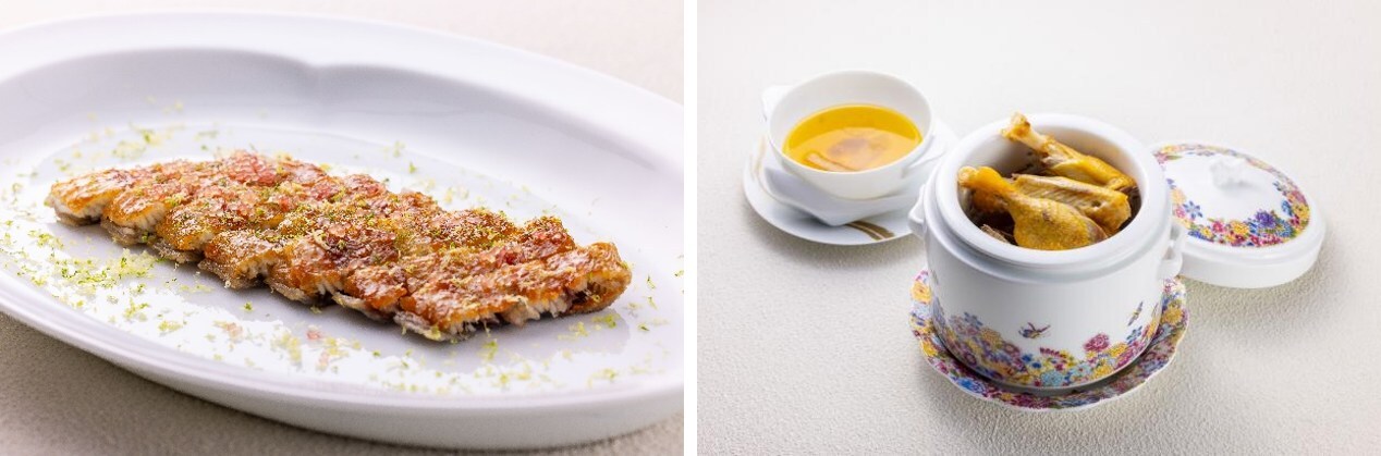 福承中餐厅的菜单充分展现主厨对闽菜文化的深度理解与创新精神。招牌菜品"脆皮福鳗"源自主厨父辈记忆中的味道,通过独特的36小时吊干工艺和精准的油炸技术,呈现出外酥里嫩的绝妙口感,配以蜂蜜涂层和三种柠檬香气,形成多层次的风味体验。"晋江风味牛排"的渊源可追溯至海上丝绸之路的文化交融,选用优质牛肋排,以咖喱与沙茶为基础,配以多种香辛料文火慢炖150分钟,让香料风味充分渗透,展现东西方饮食文化的完美融合。"沙虫干溢鸭汤"精选福建番鸭,加入沙虫干提鲜,经三小时蒸制,汤品醇厚鲜美,带给宾客温暖满足的味觉享受。