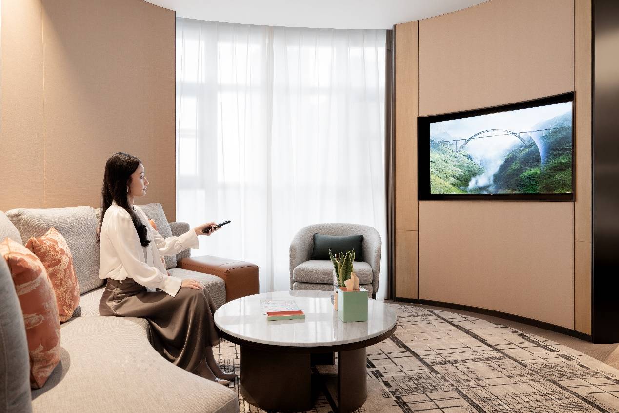 此次合作的核心,在于摒弃过去智慧酒店“单品思维”的局限,转而构建一个以体验为中心、软硬件深度融合的有机生命体。酒店客房内,一台98吋的QD-Mini LED智能电视不再仅仅是娱乐终端,而是整个房间的“智慧中枢”。宾客仅需一句语音指令,即可联动控制灯光、空调、窗帘,营造最舒适的环境。更智能的是,基于TCL AI大模型深度定制的酒店场景,系统能够理解“播放科幻片并调暗灯光”这类复合指令,实现了“所想即所得”的沉浸式交互。