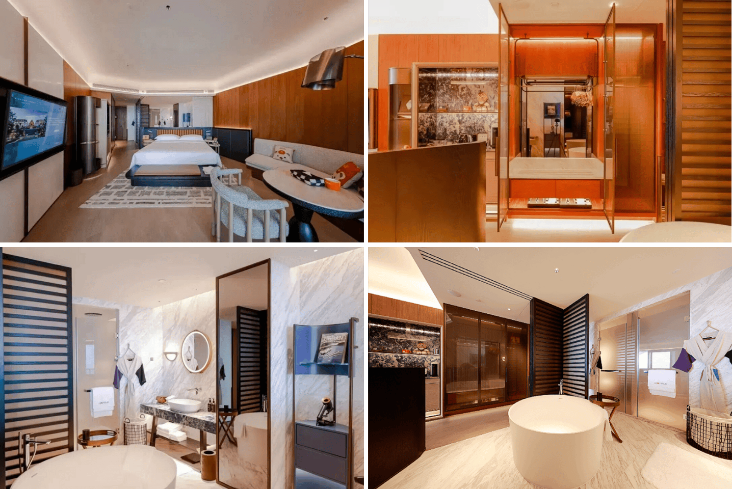 清水湾金普顿包含289 间客房,搭载了海福乐门配套五金方案,轻盈、顺滑、精美,功能和装饰性相容兼顾恰如其分。海福乐的移门屏风提供了更私密的选择,需要时可与房间隔断;融入天花的线性轨道,极窄缝隙,进一步提升了隔音性能和视觉效果。无论是在更衣区、mini吧还是在浴室,都能看到海福乐的小小身影在贴心守护。