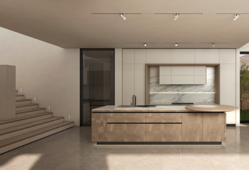 在一层共享空间中,FotileStyle慕士塔格谷雨西厨系统成为智慧与美学的双重叙事者,原始的木制纹、溫润的配色赋予空间温馨情感。开放式的布局科学规划烘焙区、主操作区、小家电区,开放式中岛配置双层旋转台面,创造社交化的多元厨房场景。同时,搭载FIKS OS智慧系统的语音控制,辅助下厨让烹饪更加高效和富有乐趣。