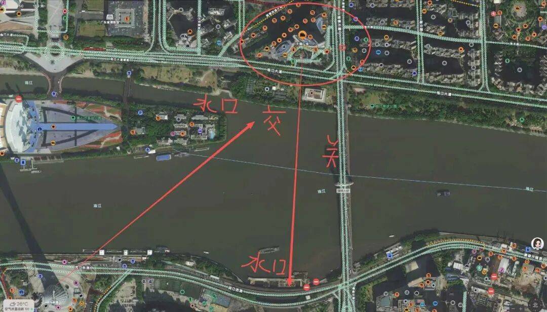 新建成的黄埔涌步行桥,优美流畅的拱形身姿,宛如一弯秀雅的“朝案”,恰好位于天德广场南向的明堂之前。更妙的是,它与后方阅江西路共同构成了“三层朝山”的格局,层层叠进,环抱有情于天德广场。