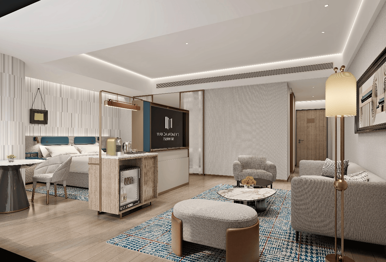 同样的逻辑贯穿于其他重点项目。杭州萧山双品牌酒店从《富春山居图》的山水意境中汲取灵感,演绎杭州的古典韵味与现代节奏。珠海万达美华酒店的设计灵感萃取海洋元素与岭南文脉,在工业风中融入地域特色。这些项目共同证明,2026年的万达生活方式酒店,正致力于成为每一座城市独特文化故事的优秀“翻译者”与“呈现者”,在提供舒适居所的同时,更提供值得珍藏的地域文化体验。