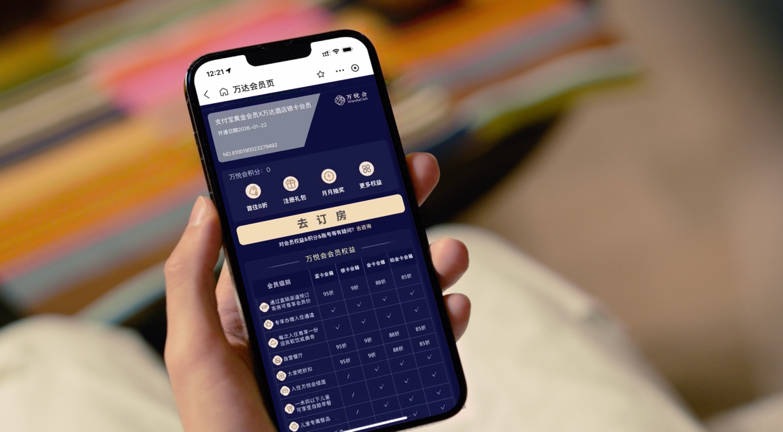 会员体系的深度融合是本次合作的一大亮点。万达酒店及度假村忠诚度计划 “万悦会” 作为支付宝超10亿庞大会员体系的优选合作品牌之一,支付宝会员可精准匹配“万悦会”会员,各等级会员均可在合作场景中享受专属权益,打破生态壁垒。此举既助力万达酒店及度假村进一步拓展优质客群,也为支付宝用户带来更丰富的会员福利和高质量的服务体验。