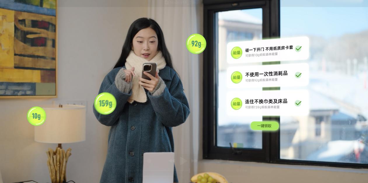 在绿色运营方面,双方联合推行 “绿色入住” 计划,将蚂蚁森林的公益和环保理念深度融入酒店入住场景。宾客入住期间,使用“碰一下·开门”、自带洗漱用品,或选择无需每日更换巾类及床品等绿色行为,即可获得蚂蚁森林能量,参与生态保护。实现“住宿即做公益”的绿色消费模式,形成环保行动与用户激励的良性闭环。