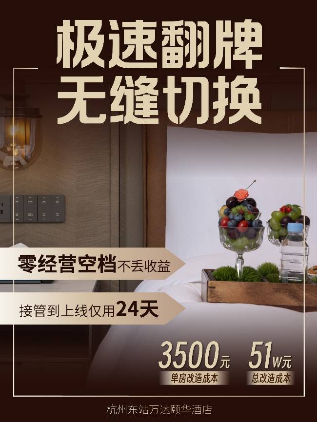 在这一语境下,重新审视万达生活方式品牌(万达颐华酒店、万达美华酒店和万达悦华酒店)近期的焕新优秀案例——杭州东站万达颐华酒店24天翻牌的成功,不难发现其意义远超一次快速的“改头换面”。它更像一个序章,揭示了在翻牌动作之后,支撑酒店穿越周期、实现长效稳定的更底层逻辑——全面嵌入品牌的精细化运营体系。