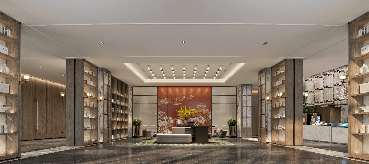 咸宁金桂湖华彬万达美华度假酒店的设计围绕“温泉”“桂花”“山水”三大关键词展开。建筑依山就势,最大限度地引入湖景与绿意;室内以原木、石材等自然材质铺陈,营造质朴温暖的度假氛围。酒店还将桂花融入餐饮与手作体验,让在地文化可触可感。