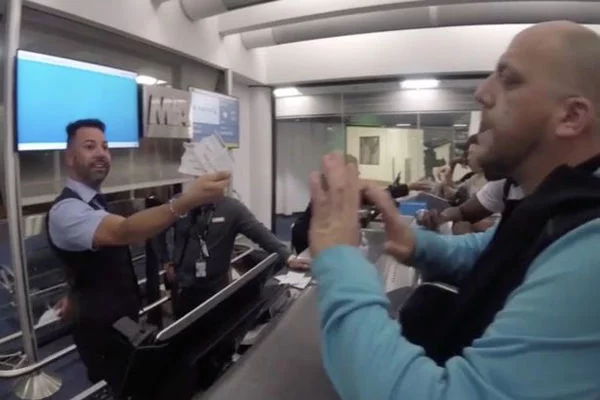 2月24日报道,近日,在美国迈阿密飞机场登机口发生惊人一幕:两位不知名的乘客声称自己在候机室等候了三个小时,但没有听到任何关于登机口即将关闭的通知,他们的座位已经给了另一个家庭,美国航空公司工作人员却将过额预订的错误归咎于乘客没有按时排队,这引起了双方激烈的争执。